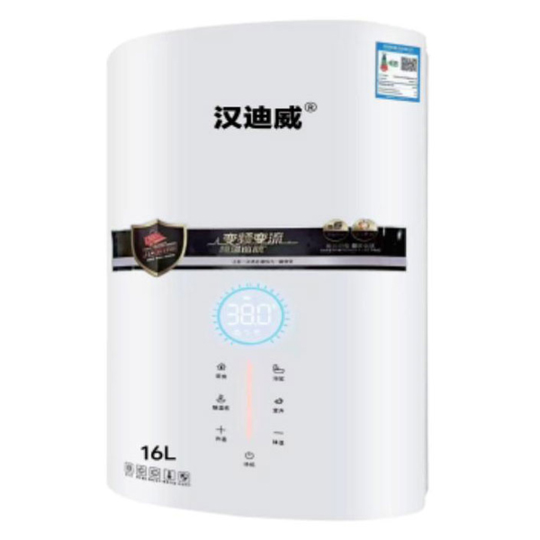 高端白色弧形钢化玻璃面板、灰色烤漆底壳,无氧铜水箱百威主板,裕祥风机,百威比例阀,具有防干烧。意外熄火自动关机等安全装置;微电脑数码恒温。