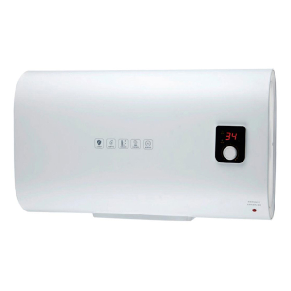白色金属烤漆外壳、扁桶蓝晶硅搪瓷内胆,电脑调温,数码显示三重保护:漏电开关保护、防超温保护、防干烧保护